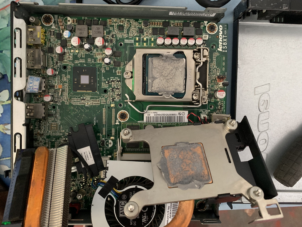 拆掉CPU风扇后能看到台式机CPU,卖家涂得硅脂有点多,就不拆了。