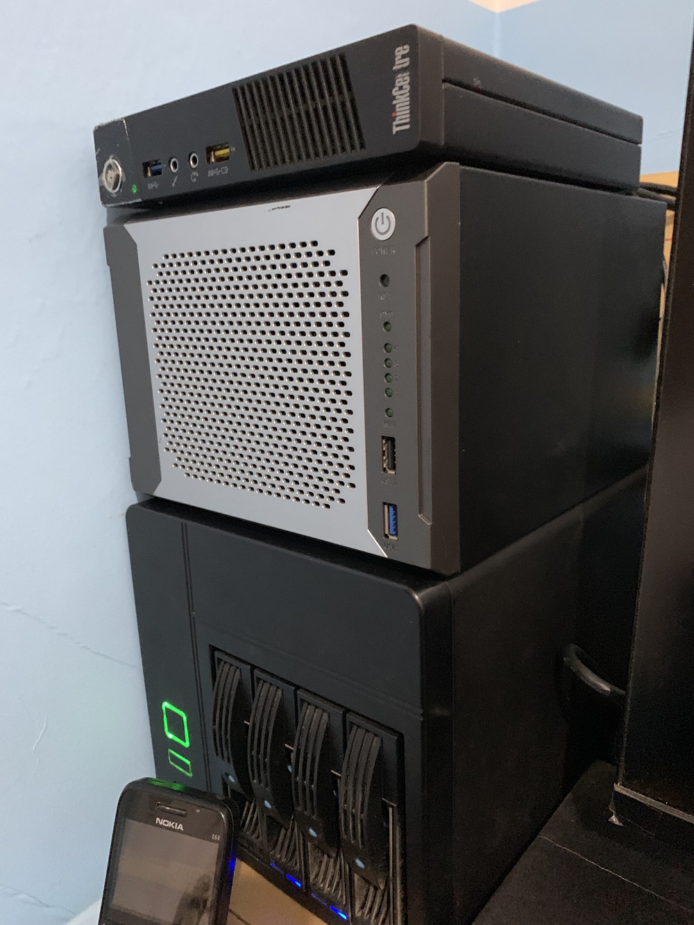 打开外包装后,联想90W电源和小主机。