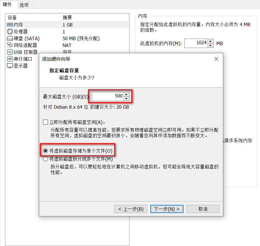 最大磁盘大小,就是你需要分配的虚拟机的硬盘大小,根据自己需求设置,尽量不要超过物理磁盘分区的大小,否则存的文件超出后会爆的。