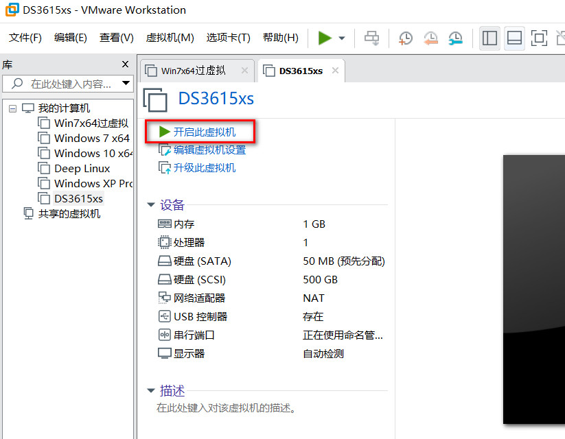 然后打开虚拟机点击左上角文件-打开-找到刚才放置的黑群晖系统文件夹打开ds3615.vmx文件
