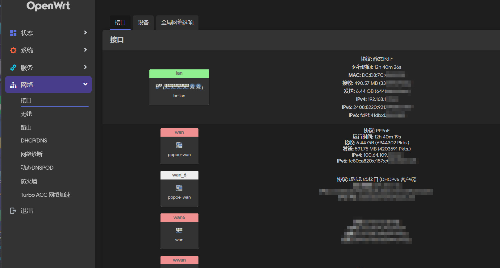 赶紧登录路由器一看,瞬间心凉半截 ——IPv4 地址居然变成了 100 开头!