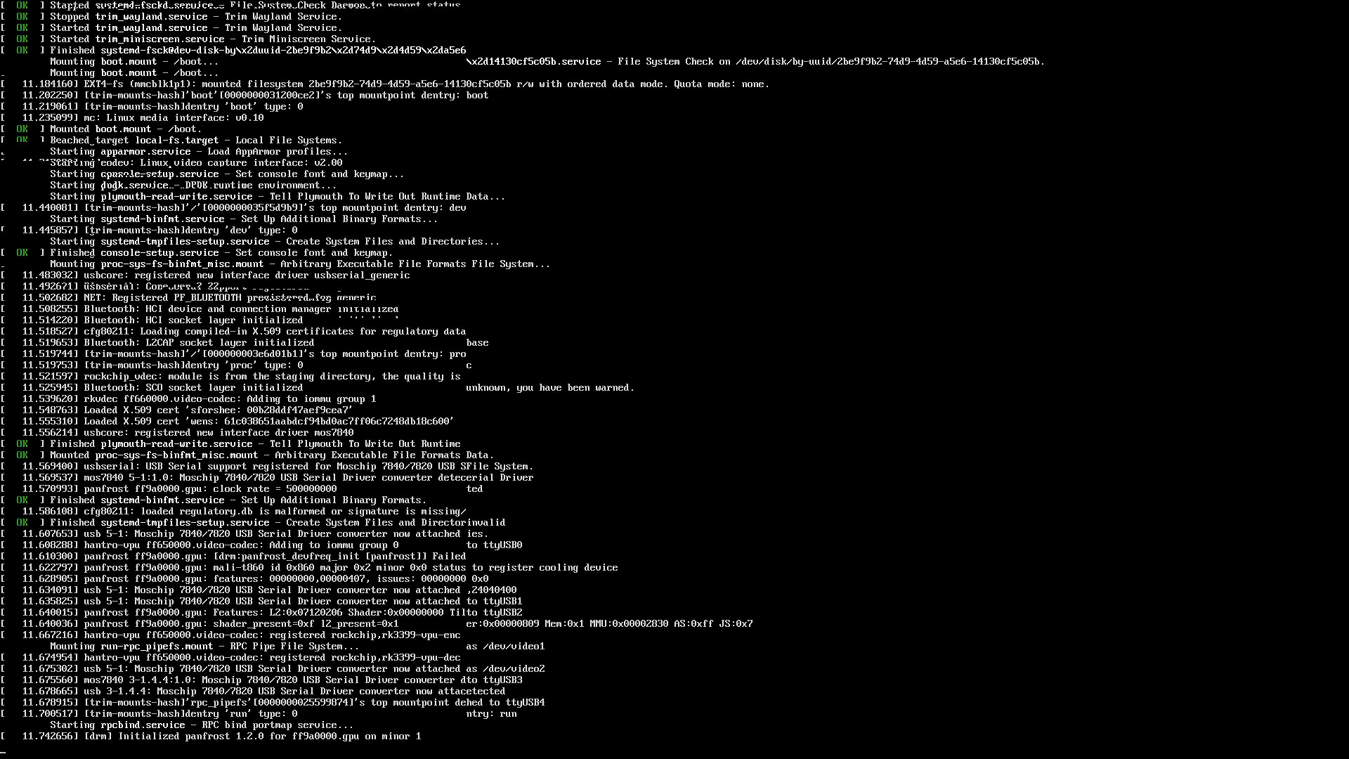 把TF卡插入AM40主机,插电开机,显示器会显示跑马,这就是从TF卡开机了