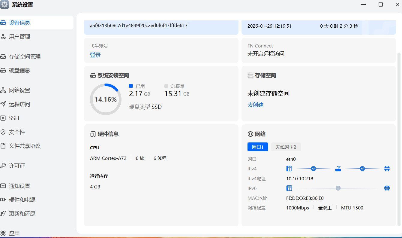 显示飞牛的IP了打开浏览器输入IP进行初始化飞牛
