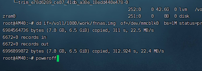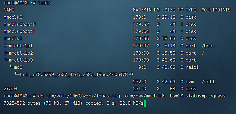 dd if=/vol1/1000/work/fnnas.img of=/dev/mmcblk0 bs=1M status=progress