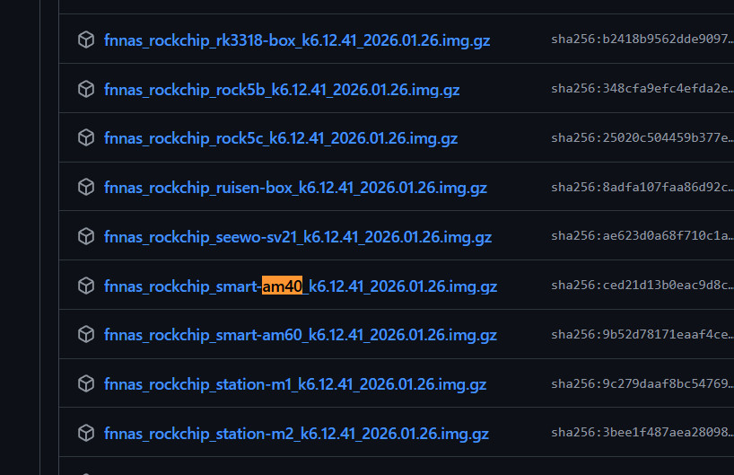 搜索AM40下载,然后解压出fnnas_rockchip_smart-am40_k6.12.41_2026.01.26.img(目前最新版,后期自己替换新版本)